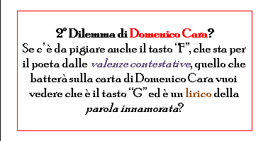 Se c’ è da pigiare anche il tasto “F”, che sta per il poeta dalle valenze contestative, quello che batterà sulla carta di Domenico Cara (1) vuoi vedere che è il tasto “G” ed è un lirico della parola innamorata?